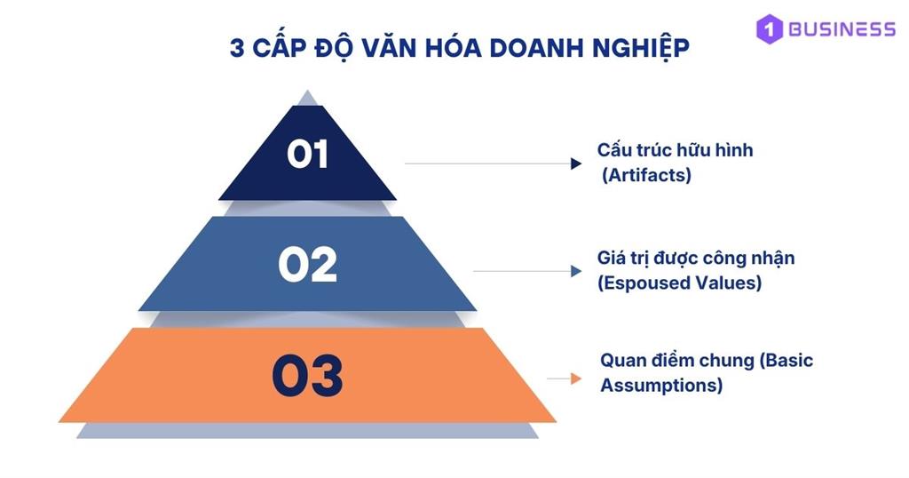 Theo Edgar Henry Schein, văn hóa doanh nghiệp được cấu thành từ ba cấp độ khác nhau, phản ánh mức độ biểu hiện từ bên ngoài đến bản chất sâu bên trong của tổ chức. Ba cấp độ này bao gồm: