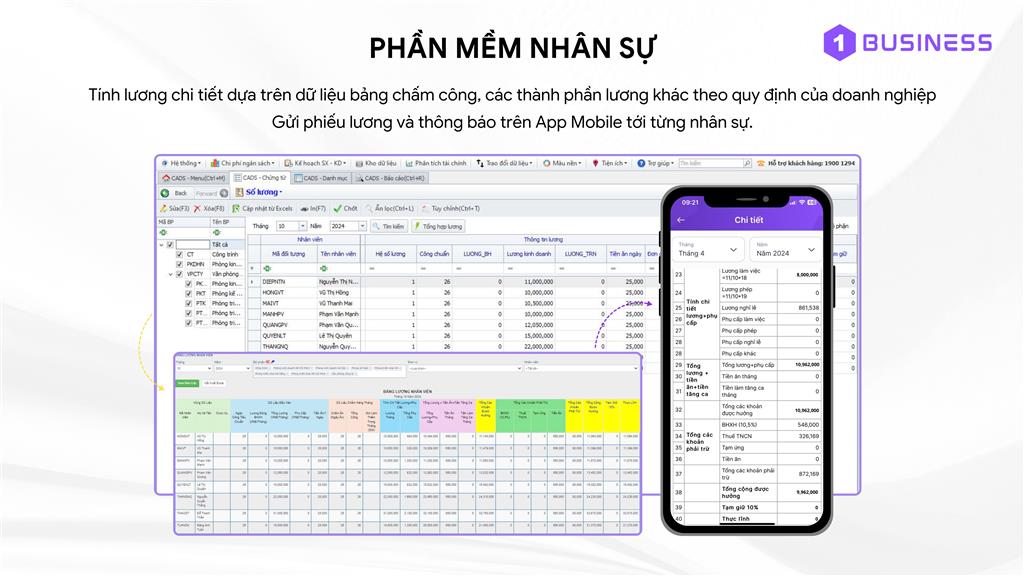 Biểu thuế luỹ tiến từng phần có hiệu lực khiến việc tính toán thuế TNCN trở nên phức tạp và mất nhiều thời gian với những doanh nghiệp có nhiều nhân sự. Nhằm giải quyết những khó khăn doanh nghiệp gặp phải, Nền tảng Quản trị doanh nghiệp toàn diện 1Business triển khai giải pháp Quản trị nhân sự giúp doanh nghiệp tính lương chính xác và tiết kiệm thời gian: