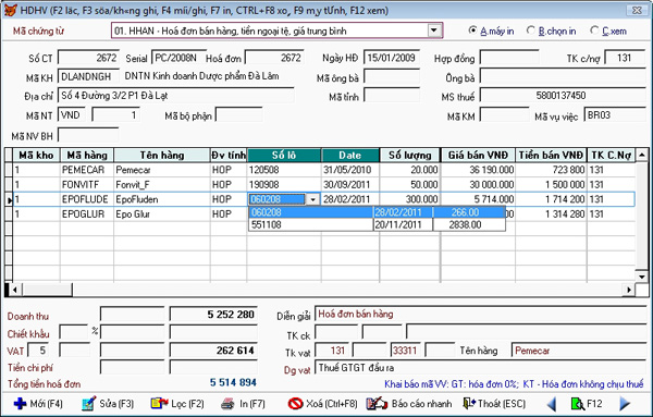 - Tính giá vốn hàng hóa xuất kho theo mặt hàng và theo lô (lô và hạn sử dụng) thuốc