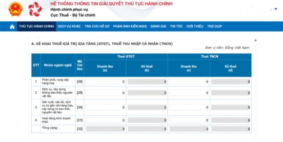 Và cuối cùng điền các thông tin bắt buộc, doanh thu theo nhóm ngành nghề và đính kèm phụ lục bảng kê chi tiết.