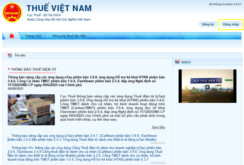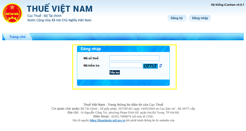 Bước 2: Chọn “ Đăng Nhập” . Nếu chưa có tài khoản, chọn “Đăng ký” và làm theo hướng dẫn. Cần mang CMND/CCCD đến cơ quan thuế xác nhận nếu có yêu cầu.