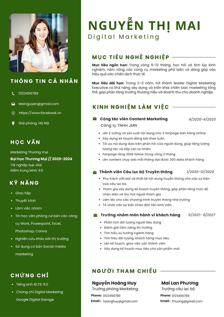 Người tham chiếu: Nếu có, bạn có thể thêm thông tin người tham chiếu như giảng viên hoặc quản lý cũ. Điều này giúp nhà tuyển dụng có thêm cơ sở để xác minh thông tin. Tuy nhiên, chỉ nên đưa vào khi thực sự cần thiết và đã được sự đồng ý của người tham chiếu để đảm bảo tính chuyên nghiệp.