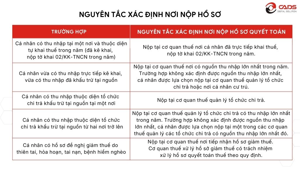 Nguyên tắc xác định nơi nộp hồ sơ được minh họa tại bảng dưới đây: