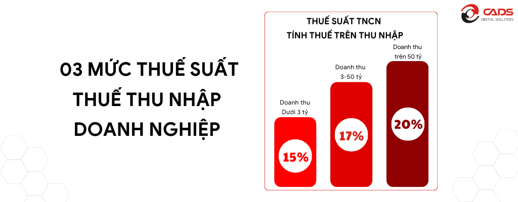 - Áp dụng 03 mức thuế suất thuế thu nhập doanh nghiệp là Thuế suất 15% áp dụng đối với doanh nghiệp có tổng doanh thu năm không quá 03 tỷ đồng; Thuế suất 17% áp dụng đối với doanh nghiệp có tổng doanh thu năm từ trên 03 tỷ đồng đến không quá 50 tỷ đồng và Thuế suất 20% trừ 02 trường hợp quy định trên và đối tượng được ưu đãi về thuế suất.
