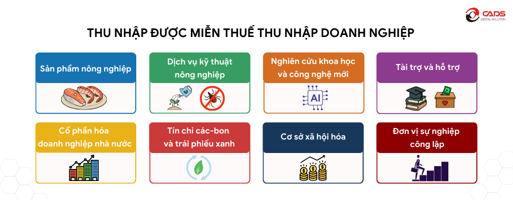 - Nghiên cứu khoa học và công nghệ mới: Thu nhập từ việc thực hiện hợp đồng nghiên cứu khoa học, phát triển công nghệ; bán sản phẩm làm ra từ công nghệ mới lần đầu áp dụng ở Việt Nam được miễn thuế 03 năm kể từ khi có thu nhập; bán sản phẩm sản xuất thử nghiệm có kiểm soát theo quy định của pháp luật về khoa học, công nghệ và đổi mới sáng tạo được miễn thuế 03 năm kể từ khi có thu nhập và sản phẩm phải được cơ quan có thẩm quyền xác nhận.