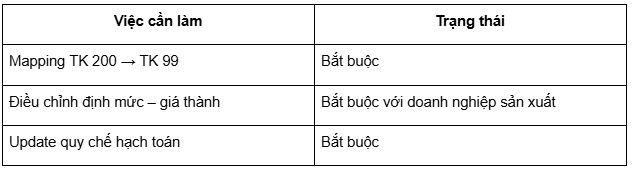 - Doanh nghiệp phải lập bảng chuyển đổi số dư TK từ TT200 → TT99