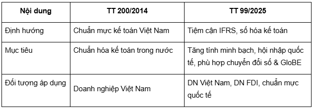 TỔNG QUAN NHỮNG ĐIỂM KHÁC BIỆT GIỮA THÔNG TƯ 99/2025/TT-BTC VÀ THÔNG TƯ 200/2014/TT-BTC