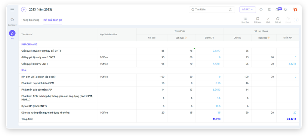 - Hệ thống đánh giá kết quả đa chiều, có KPI dashboard trực quan.