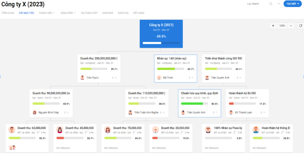 - Cho phép thiết lập KPI theo từng phòng ban, cá nhân hoặc theo mục tiêu chiến lược tổng thể của doanh nghiệp.