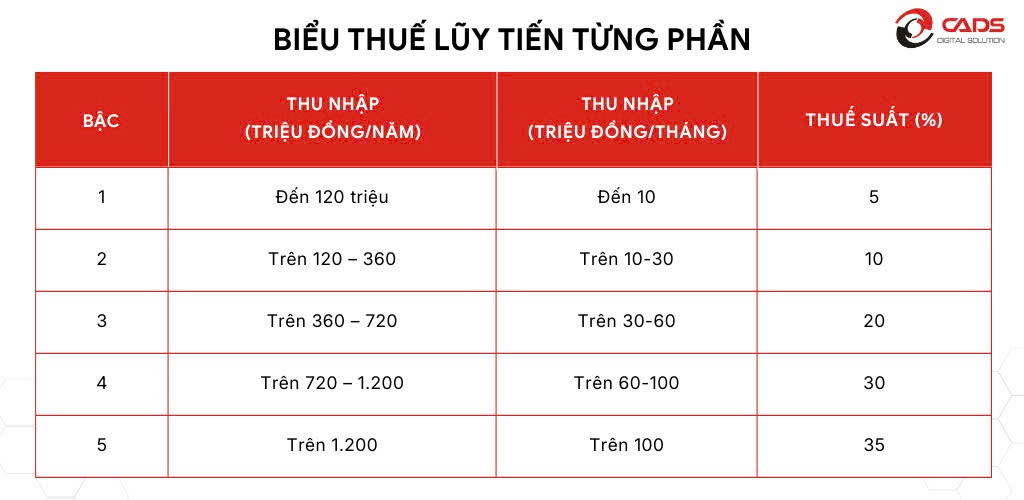 Theo Luật Thuế thu nhập cá nhân (sửa đổi), biểu thuế lũy tiến được rút gọn xuống thay thế biểu thuế lũy tiến 7 bậc được quy định tại Thông tư 111/2013/TT-BTC, cụ thể biểu thuế như sau: